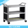 Xe đẩy phục vụ nhà hàng bằng nhựa được sử dụng chủ yếu trong nhà hàng. Được SG Clean nhập khẩu và phân phối tại HCM. Sản phẩm bền đẹp màu đen phù hợp với nhu cầu cho nhiều nhà hàng, khách sạn. Chất liệu được làm từ nhựa cao cấp nên độ bền rất cao.